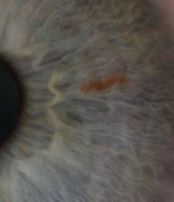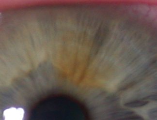 The diagram above is an example chart of the areas of the iris of the right eye (a mirror image chart relevant if you are looking in a mirror). There is a lot of close up detail contained within the iris including possible fibre anomalies, pigments, whitening and shape variations of the structures it contains. Sclerology is a similar study of the blood vessels, colours and patches of the whites of the eyes which adds more information to that obtained from iridology.